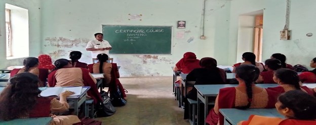 Guest Lecture by M. Yedukondalu: The Department of Economics of GCW(A), Guntur conducted Guest Lecture Class by Yedukondala Rao, Lecturer in Economics from GDC, Chebrolu, Guntur District. He delivered his lecture to I B.A Students on Topic- Banking Reforms in India. 35 students are participated in this programme